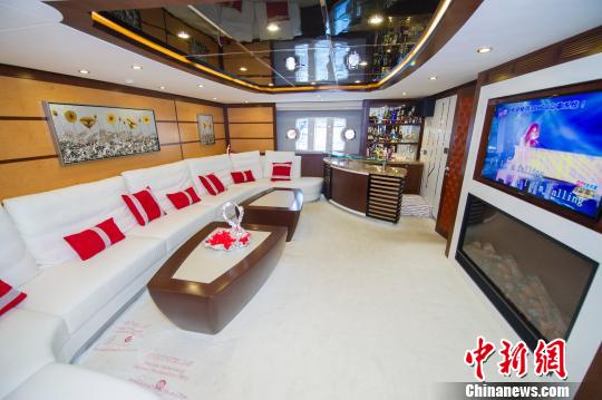 國產杰鵬拾捌號游艇內的KTV。杰鵬拾捌號游艇由中國團隊研發、設計、生產,單次續航20小時,最快可達25節,共設有客廳、餐廳、4個臥室以及一個KTV房等,價值約5000萬元人民幣。 中新...【查看詳情】